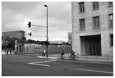 Aujourd'hui les différences Ost/West s'estompent. On cherche vaguement sur le tracé ancré dans le bitume ce qui était in, ce qui était out. Il faut renseigner le pékin moyen, genre week-end express, qui cale cette activité entre une visite au KaDeWe et une autre, en soirée, au Berghain. Disposant d'un plan d'avant 89 acquis lors de ma première visite, j'ai le tracé à portée de main, sans effort - c'est vrai que des noms de rues et des noms de lieux ont changé, reconvertis, ce qui complique les choses mais renseigne aussi beaucoup.
